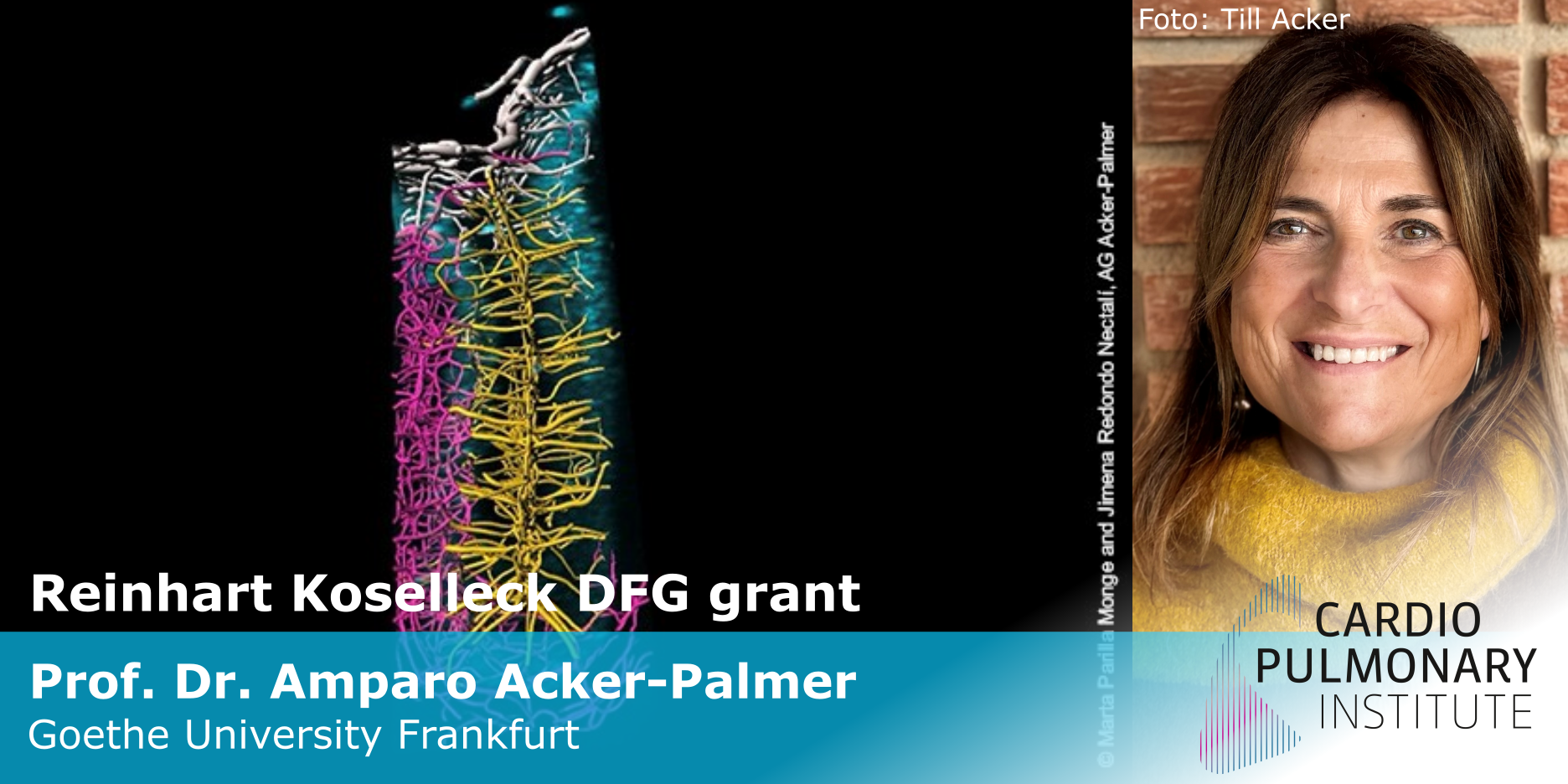 1,25 Million Euro for neurovascular research at the Goethe University Frankfurt receives Prof. Acker-Palmer from the prestigious Reinhart Koselleck grant. In her project, she aims to investigate the hidden functions of vascular-neuronal interfaces. Blood vessels not only transport oxygen and nutrients, they are also sites of communicative processes that regulate brain development and maintain its function.